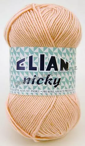 Velice oblíbená akrylová levná pletací příze Elian Nicky, vhodná i na háčkování. Máme skladem široký výběr barev. Vhodná na letní oblečení - halenky, svetry, ale i na dětské čepičky, šatičky, deky, nebo na výrobu háčkovaných hraček. Složení: 100% akryl. Český výrobce VSV